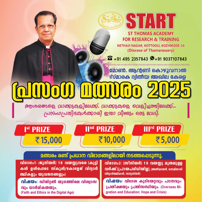 Archbishop Mar Joseph Pamplany is a well-known writer and versatile orator. He has published more than 30 books, 40 research articles in national and international publications, and more than 250 articles in regional Malayalam periodicals. He is a Syro Malabar permanent Synodal Member Syro Malabar Synodal Secretary. Currently, he is the Chairman of the Media Commission of both KCBC and Syro Malabar Church. He is the chairman of the Synodal Commission of the Good Shepherd Major Seminary, Kunnoth.