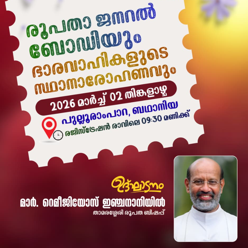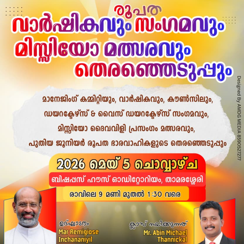 In the year 2010 Fr. Remigius Maria Paul Inchananiyil was elected as the fourth bishop of the eparchy of Thamarassery on January 18, 2010 receiving the name Mar Remigiose Inchananiyil. On 8th of April 2010 he was consecrated the Bishop of Thamarassery by Archbishop Mar George Valiamattom and then on he took charge on the Eparchy.
